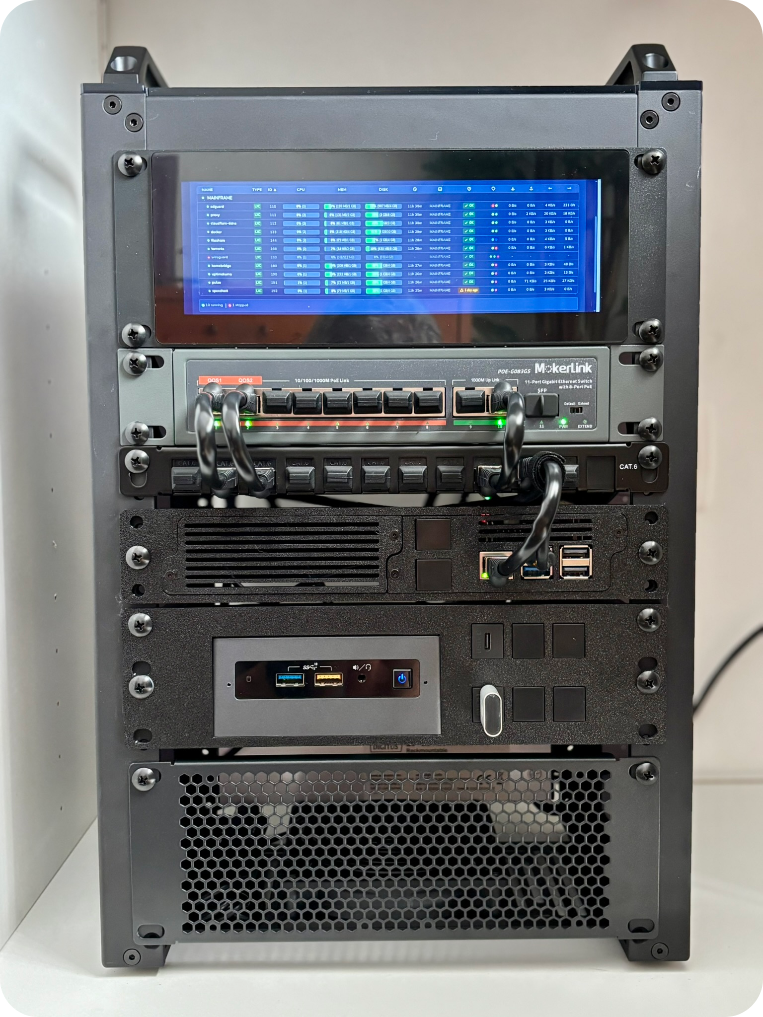 My homelab lives in a DeskPi RackMate T1, it is compact, clean, and efficient. - Check on Amazon